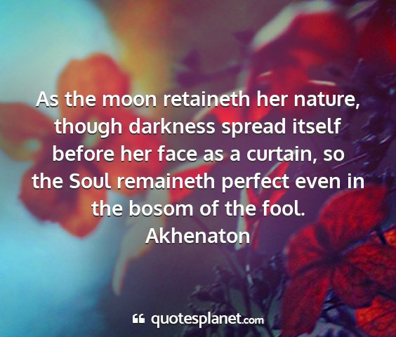 As the moon retaineth her nature, though darkness spread itself before her face as a curtain, so the Soul remaineth perfect even in the bosom of the fool.Akhenaton