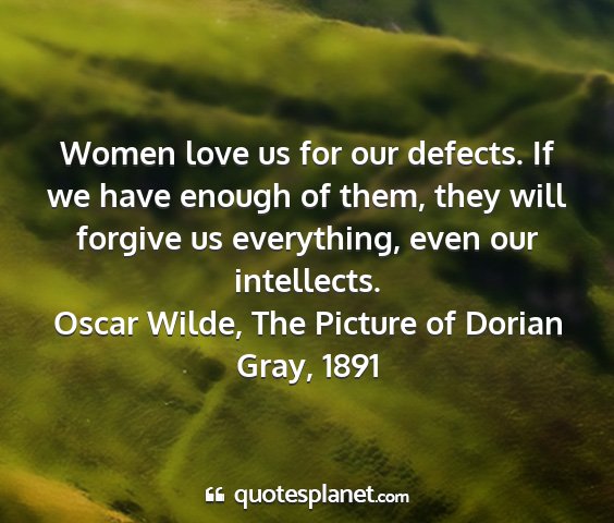 Women love us for our defects. If we have enough of them, they will forgive us everything, even our intellects.Oscar Wilde, The Picture of Dorian Gray, 1891