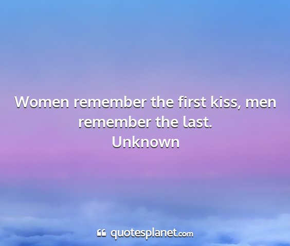 Women remember the first kiss, men remember the last.