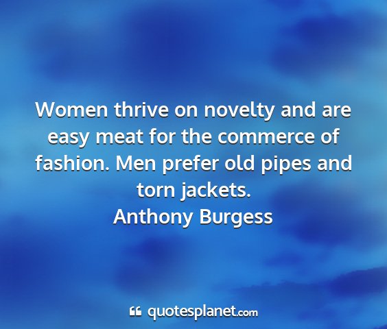 Women thrive on novelty and are easy meat for the commerce of fashion. Men prefer old pipes and torn jackets.Anthony Burgess