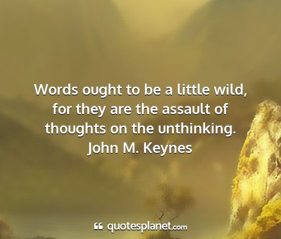 Words ought to be a little wild, for they are the assault of thoughts on the unthinking.John M. Keynes
