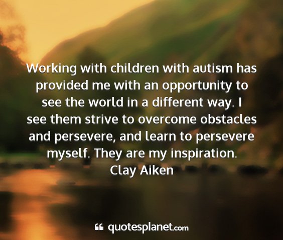 Working with children with autism has provided me with an opportunity to see the world in a different way. I see them strive to overcome obstacles and persevere, and learn to persevere myself. They are my inspiration.Clay Aiken