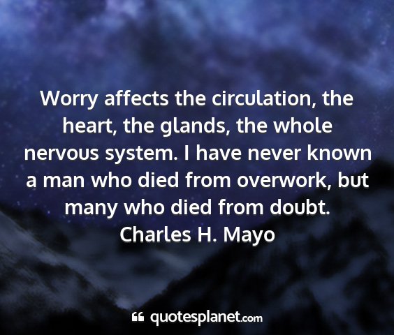 Worry affects the circulation, the heart, the glands, the whole nervous system. I have never known a man who died from overwork, but many who died from doubt.Charles H. Mayo