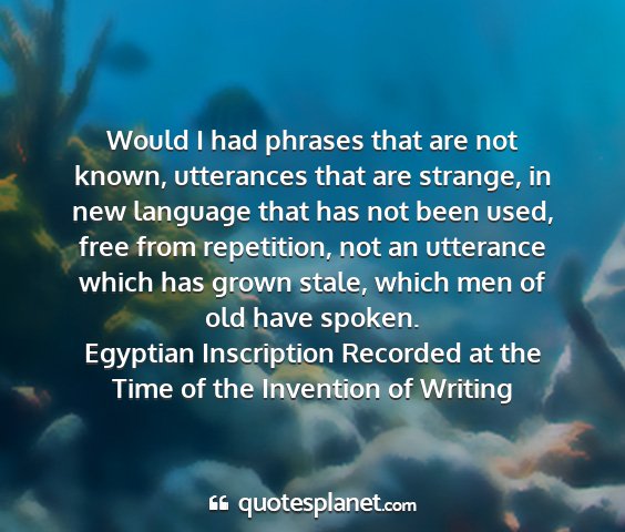 Would I had phrases that are not known, utterances that are strange, in new language that has not been used, free from repetition, not an utterance which has grown stale, which men of old have spoken.Egyptian Inscription Recorded at the Time of the Invention of Writing