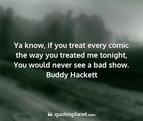 Ya know, if you treat every comic the way you treated me tonight, You would never see a bad show.Buddy Hackett