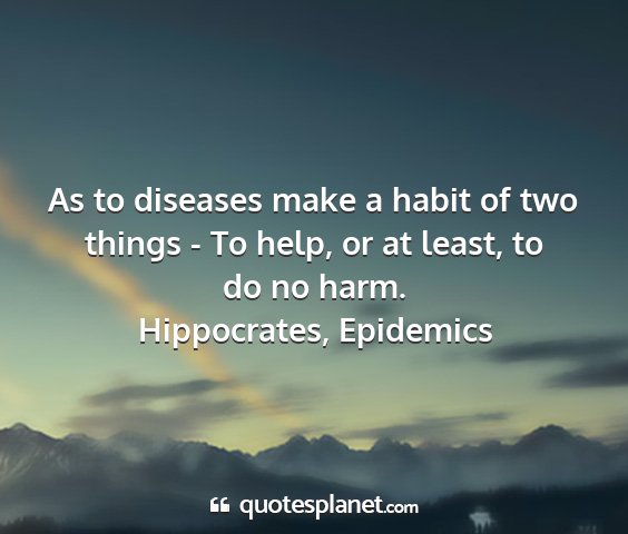 As to diseases make a habit of two things - To help, or at least, to do no harm.Hippocrates, Epidemics