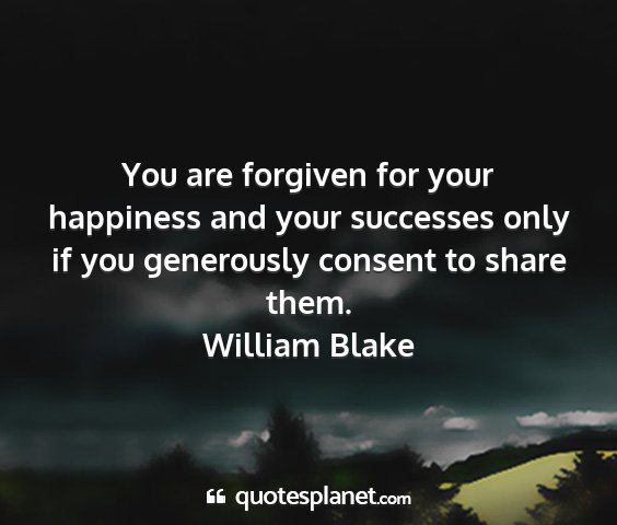 You are forgiven for your happiness and your successes only if you generously consent to share them.William Blake