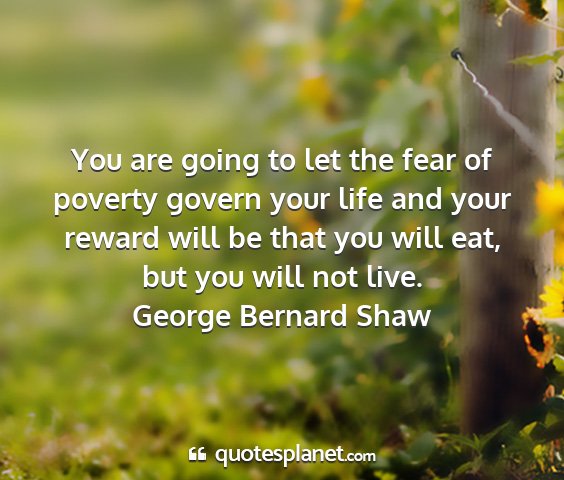 You are going to let the fear of poverty govern your life and your reward will be that you will eat, but you will not live.George Bernard Shaw