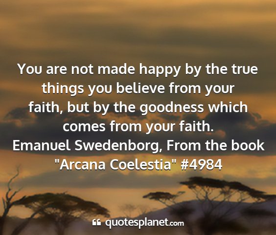 You are not made happy by the true things you believe from your faith, but by the goodness which comes from your faith.Emanuel Swedenborg, From the book "Arcana Coelestia" #4984