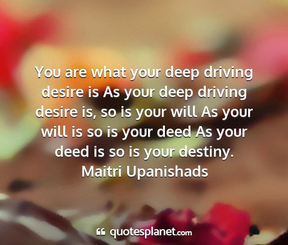 You are what your deep driving desire is As your deep driving desire is, so is your will As your will is so is your deed As your deed is so is your destiny.Maitri Upanishads