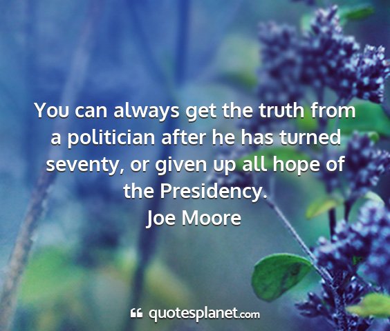 You can always get the truth from a politician after he has turned seventy, or given up all hope of the Presidency.Joe Moore