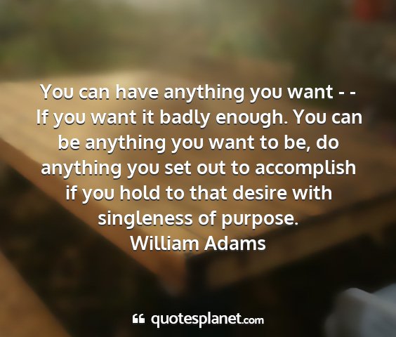 You can have anything you want - - If you want it badly enough. You can be anything you want to be, do anything you set out to accomplish if you hold to that desire with singleness of purpose.William Adams