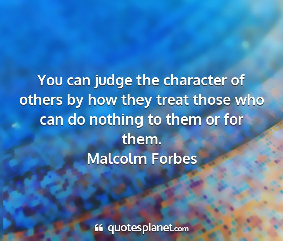 You can judge the character of others by how they treat those who can do nothing to them or for them.Malcolm Forbes