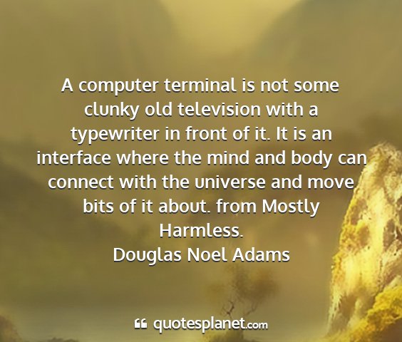 A computer terminal is not some clunky old television with a typewriter in front of it. It is an interface where the mind and body can connect with the universe and move bits of it about. from Mostly Harmless.Douglas Noel Adams