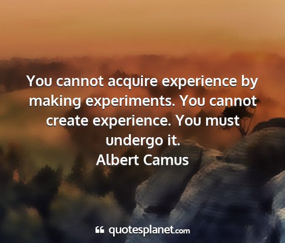You cannot acquire experience by making experiments. You cannot create experience. You must undergo it.Albert Camus