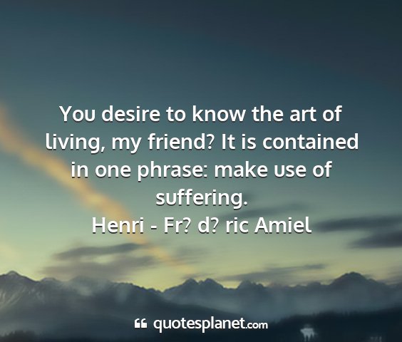 You desire to know the art of living, my friend? It is contained in one phrase: make use of suffering.Henri - Fr? d? ric Amiel