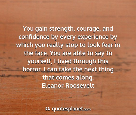 You gain strength, courage, and confidence by every experience by which you really stop to look fear in the face. You are able to say to yourself, I lived through this horror. I can take the next thing that comes along.Eleanor Roosevelt