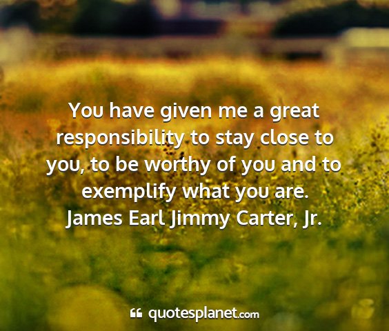 You have given me a great responsibility to stay close to you, to be worthy of you and to exemplify what you are.James Earl Jimmy Carter, Jr.