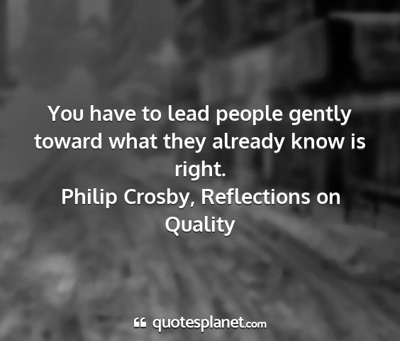 You have to lead people gently toward what they already know is right.Philip Crosby, Reflections on Quality