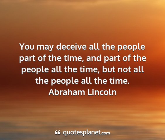 You may deceive all the people part of the time, and part of the people all the time, but not all the people all the time.Abraham Lincoln