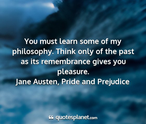 You must learn some of my philosophy. Think only of the past as its remembrance gives you pleasure.Jane Austen, Pride and Prejudice