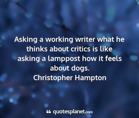 Asking a working writer what he thinks about critics is like asking a lamppost how it feels about dogs.Christopher Hampton