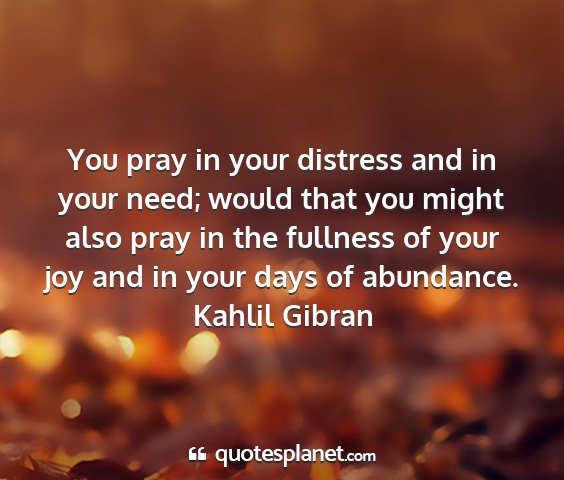 You pray in your distress and in your need; would that you might also pray in the fullness of your joy and in your days of abundance.Kahlil Gibran