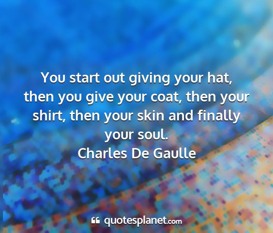 You start out giving your hat, then you give your coat, then your shirt, then your skin and finally your soul.Charles De Gaulle