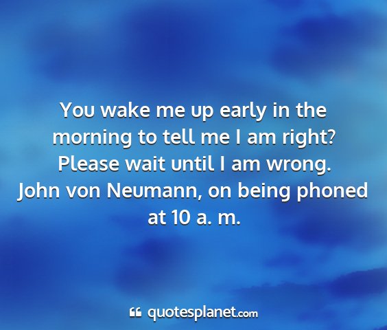 You wake me up early in the morning to tell me I am right? Please wait until I am wrong.John von Neumann, on being phoned at 10 a. m.