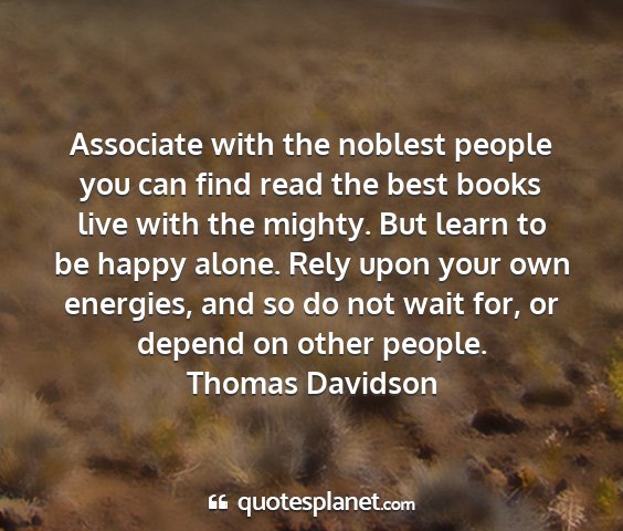 Associate with the noblest people you can find read the best books live with the mighty. But learn to be happy alone. Rely upon your own energies, and so do not wait for, or depend on other people.Thomas Davidson