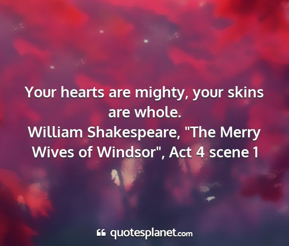 Your hearts are mighty, your skins are whole.William Shakespeare, "The Merry Wives of Windsor", Act 4 scene 1