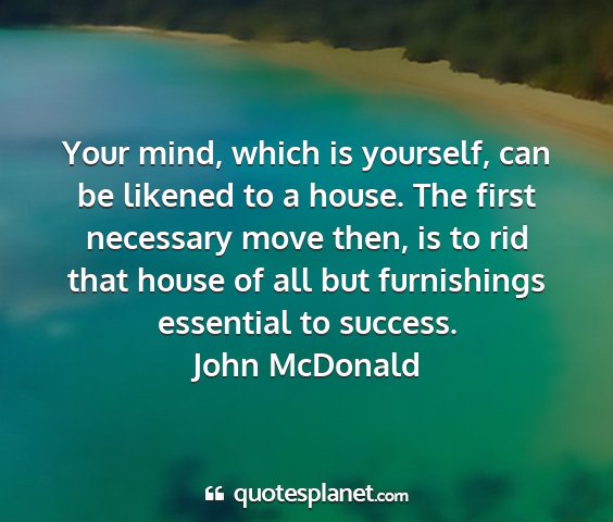 Your mind, which is yourself, can be likened to a house. The first necessary move then, is to rid that house of all but furnishings essential to success.John McDonald