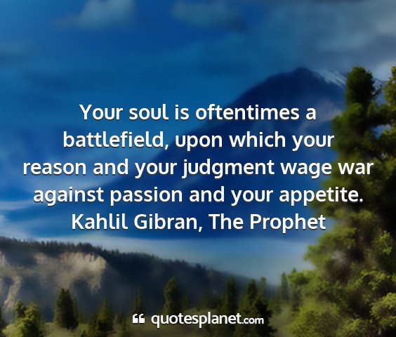 Your soul is oftentimes a battlefield, upon which your reason and your judgment wage war against passion and your appetite.Kahlil Gibran, The Prophet