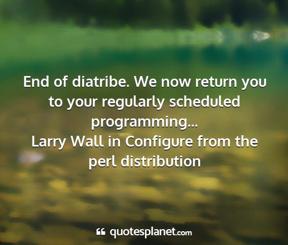 End of diatribe. We now return you to your regularly scheduled programming...Larry Wall in Configure from the perl distribution