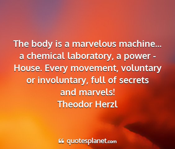The body is a marvelous machine... a chemical laboratory, a power - House. Every movement, voluntary or involuntary, full of secrets and marvels!Theodor Herzl