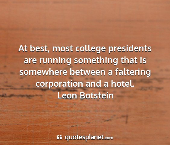 At best, most college presidents are running something that is somewhere between a faltering corporation and a hotel.Leon Botstein