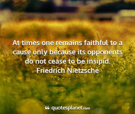 At times one remains faithful to a cause only because its opponents do not cease to be insipid.Friedrich Nietzsche