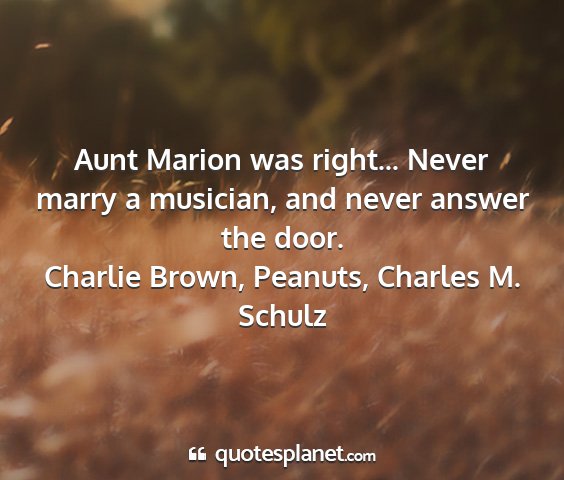 Aunt Marion was right... Never marry a musician, and never answer the door.Charlie Brown, Peanuts, Charles M. Schulz