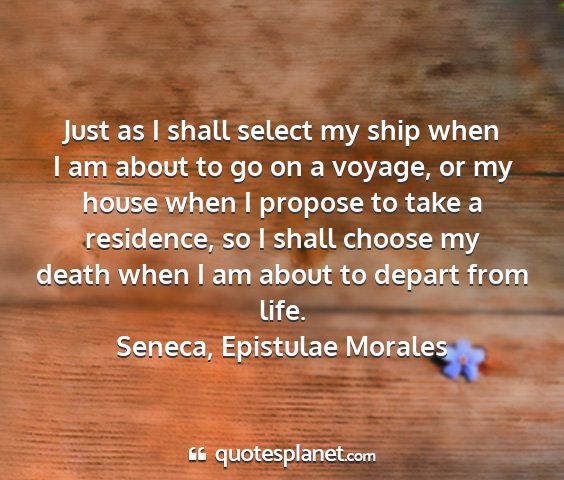 Just as I shall select my ship when I am about to go on a voyage, or my house when I propose to take a residence, so I shall choose my death when I am about to depart from life.Seneca, Epistulae Morales