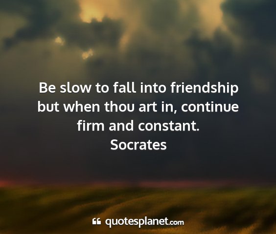 Be slow to fall into friendship but when thou art in, continue firm and constant.