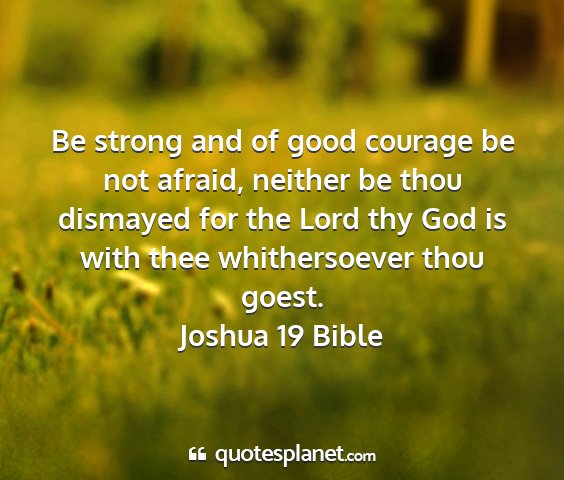 Be strong and of good courage be not afraid, neither be thou dismayed for the Lord thy God is with thee whithersoever thou goest.Joshua 19 Bible