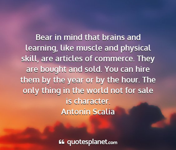 Bear in mind that brains and learning, like muscle and physical skill, are articles of commerce. They are bought and sold. You can hire them by the year or by the hour. The only thing in the world not for sale is character.Antonin Scalia