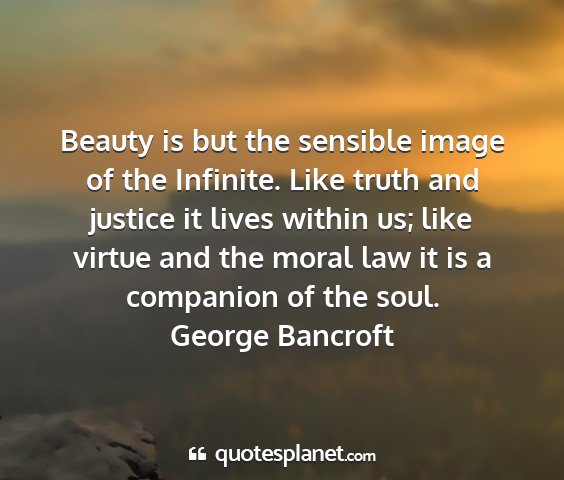 Beauty is but the sensible image of the Infinite. Like truth and justice it lives within us; like virtue and the moral law it is a companion of the soul.George Bancroft
