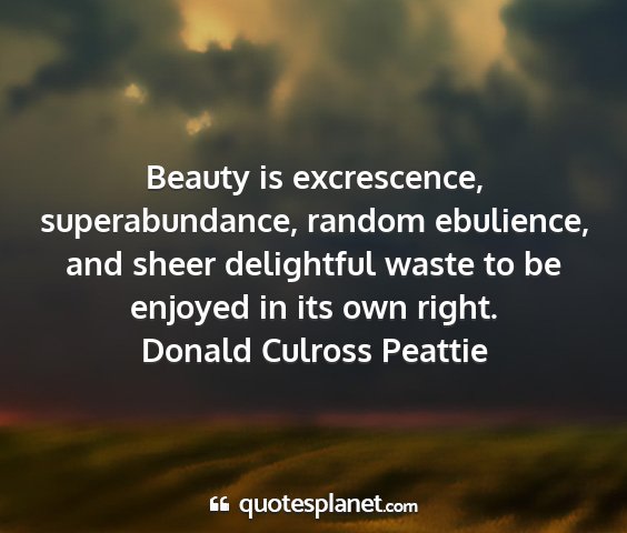 Beauty is excrescence, superabundance, random ebulience, and sheer delightful waste to be enjoyed in its own right.Donald Culross Peattie