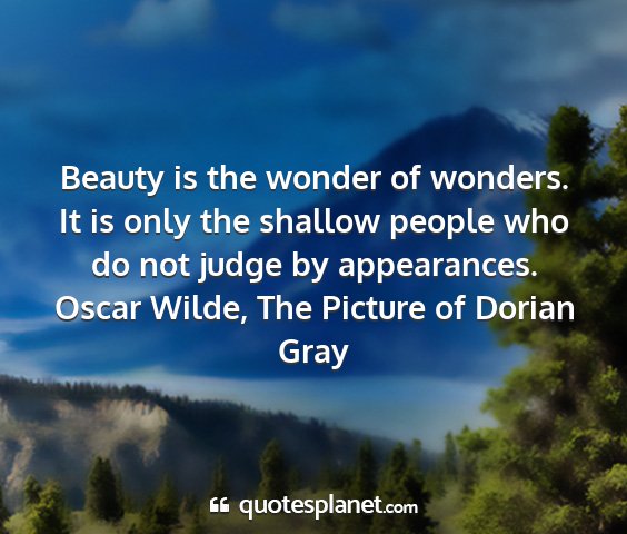Beauty is the wonder of wonders. It is only the shallow people who do not judge by appearances.Oscar Wilde, The Picture of Dorian Gray