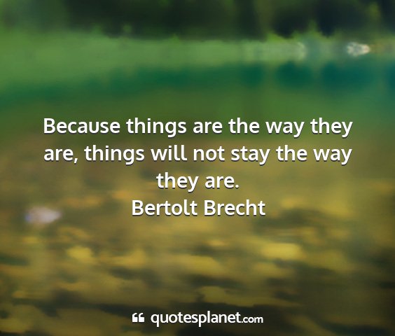 Because things are the way they are, things will not stay the way they are.