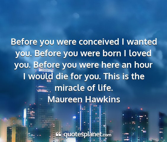 Before you were conceived I wanted you. Before you were born I loved you. Before you were here an hour I would die for you. This is the miracle of life.Maureen Hawkins