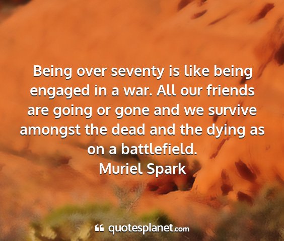 Being over seventy is like being engaged in a war. All our friends are going or gone and we survive amongst the dead and the dying as on a battlefield.Muriel Spark