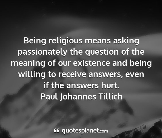 Being religious means asking passionately the question of the meaning of our existence and being willing to receive answers, even if the answers hurt.Paul Johannes Tillich