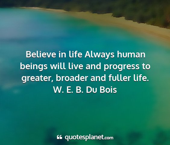 Believe in life Always human beings will live and progress to greater, broader and fuller life.W. E. B. Du Bois